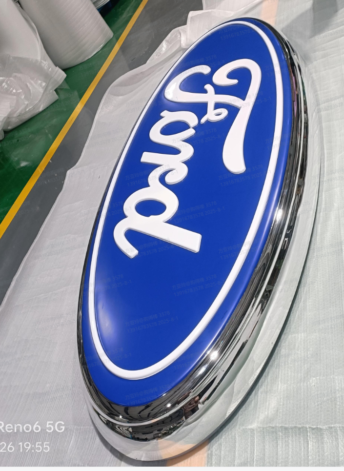 We apply vacuum coating to provide a robust, metallic sheen. Unlike traditional finishes, vacuum coating offers superior adhesion, weather resistance, and color stability, ensuring Ford’s signage retains its commanding presence.